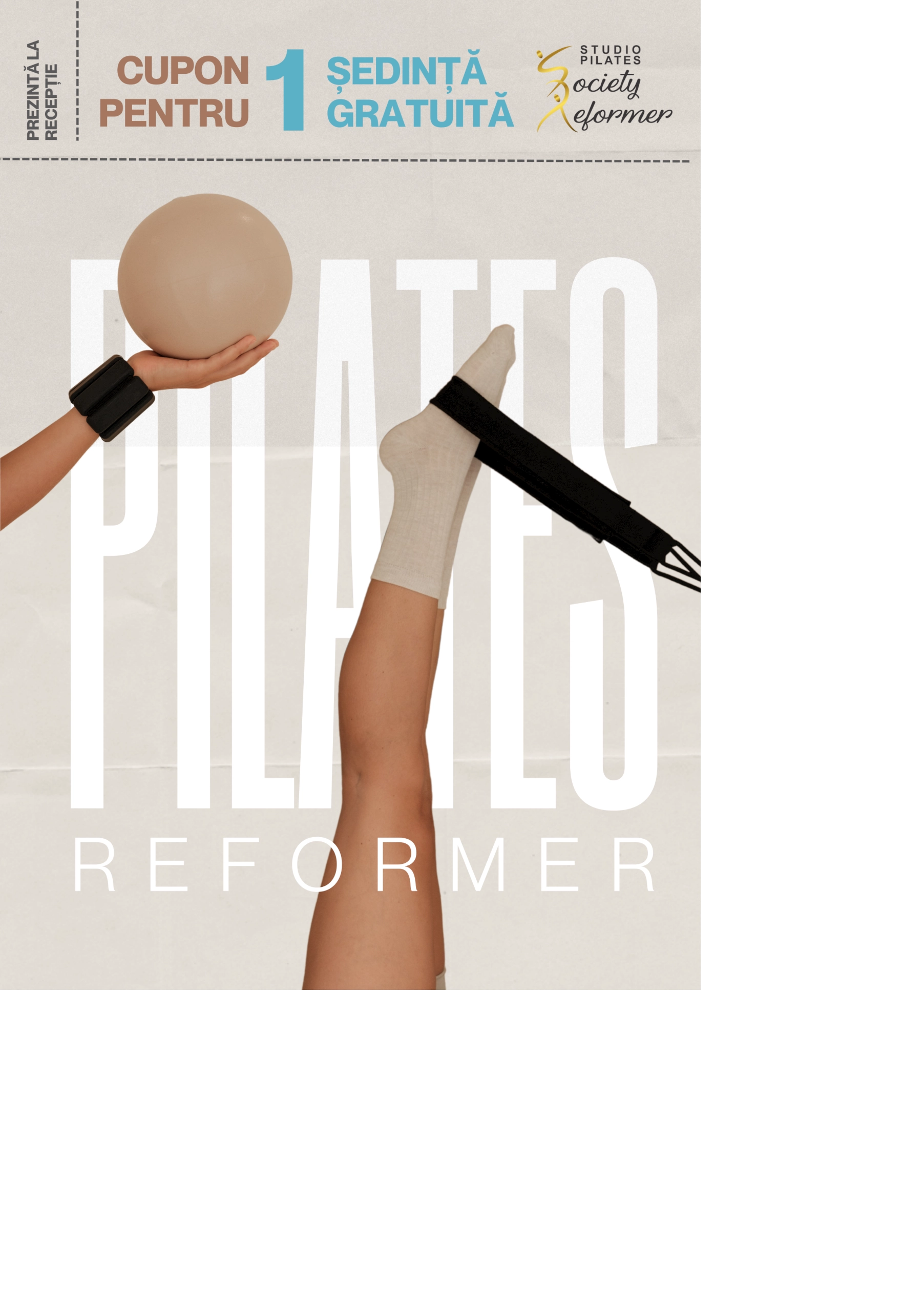 👉 Surpriză specială: dacă prezinti acest cupon la recepție, beneficiezi de o ședință de Reformer de 50 de minute, gratuită! Cuponul poate fi prezentat atat in format electonic cat si fizic.